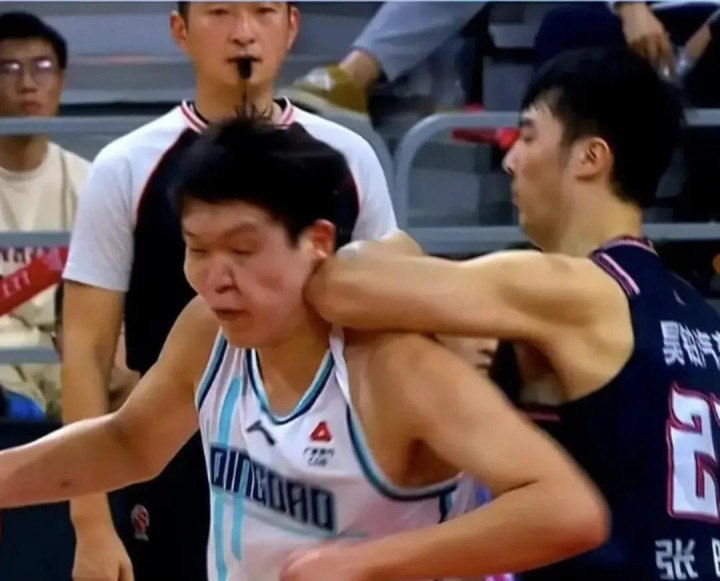杨瀚森在对抗训练中,直接被打成熊猫眼。