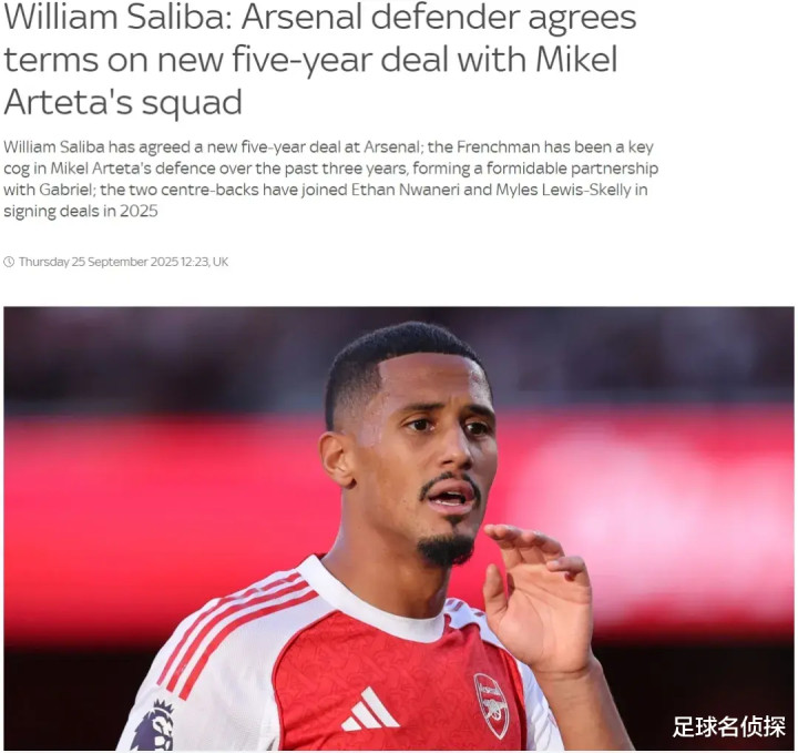 24岁的萨利巴当下的合同2027年到期,皇马是对这名中卫感兴趣的俱乐部之一,但萨利巴希望留在阿森纳,并且预计未来几天内就会在新合同上签字。