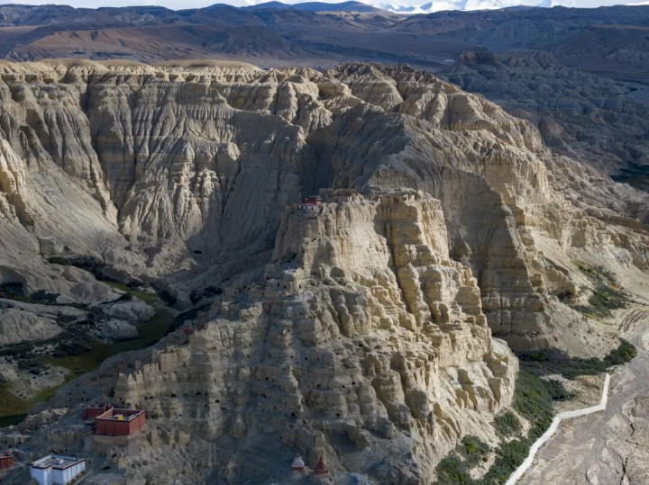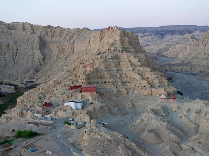 ▌古格王国遗址建筑共有房屋洞窟300余处、佛塔(高10余米)3座、寺庙4座、殿堂2间及地下暗道2条,分上、中、下三层,依次为王宫、寺庙和民居。 | ©胡友文