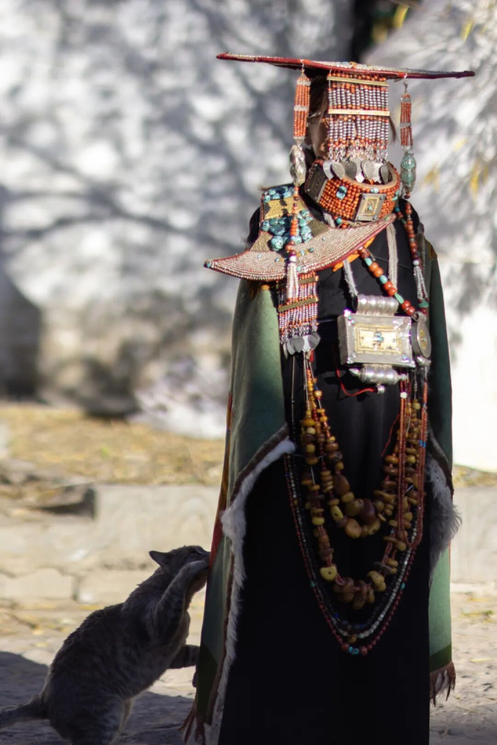 ▌普兰县科伽村一位妇女穿戴着传统“孔雀服”。 | ©姜帆