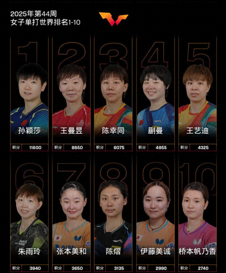 在国际乒联最新公布的世界排名中,女子乒坛的格局发生了微妙变化,日本削球名将桥本帆乃香凭借在WTT伦敦球星挑战赛上的四强表现,排名上升至第10位,创造了个人职业生涯的新高,与此同时,中国选手孙颖莎、王曼昱、陈幸同、蒯曼和王艺迪依然稳居前五,陈熠位列第八,展现了国乒在女子乒坛的整体优势;这次排名变动主要受到2025年WTT伦敦球星挑战赛新积分注入,以及2024年部分赛事旧积分失效的影响,桥本帆乃香的排名提升,是她近期稳定且出色表现的直接证明