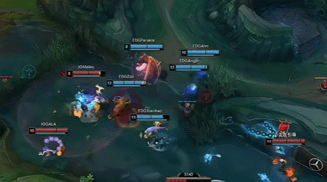 随后双方的厄塔汗团战再次上演名场面,EDG劣势局面下尝试拼一手厄塔汗,结果IG再次以多个方向包夹EDG,EDG进退两难在中间不知道怎么办才好,The Shy在上路是一个人阻止对方后撤。