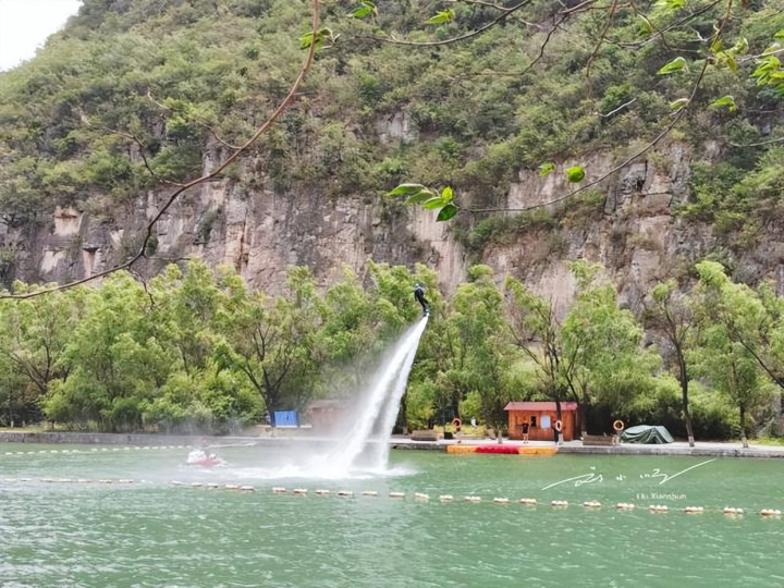 更妙的是,青天河将“北方豪迈”和“南方婉约”糅合得恰到好处。远处的山脉连绵起伏,线条粗犷,透着北方的大气;而近处的湖水、垂柳、野花,又满是江南的精致。游船行至“三姑泉”附近时,还能看到瀑布从山壁上倾泻而下,水流不算大,却像一条白丝带挂在青山间,溅起的水花落在湖面,泛起细小的波纹。导游说,每到雨季,这里的瀑布会更壮观。