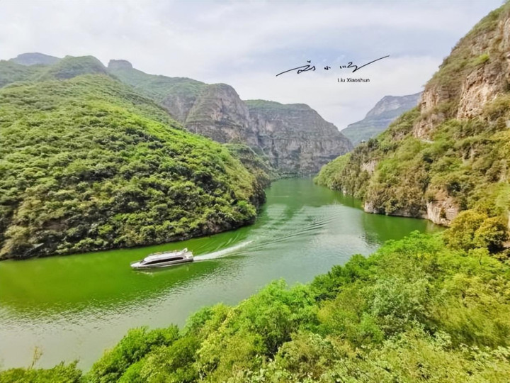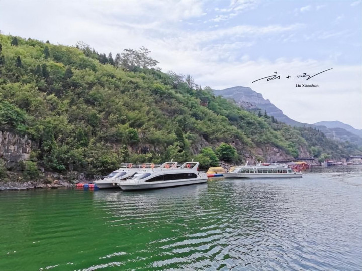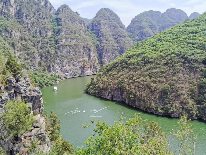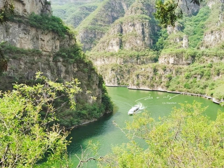 登上游船的那一刻,才真正搞懂了青天河的“5A底气”。游船缓缓驶离码头,两岸的青山慢慢向后退去,少了几分“硬朗”,多了几分“柔情”;湖水则是纯粹的碧绿,像被打翻的翡翠,阳光洒在水面上,波光粼粼。导游说:“博爱县自古就有‘北方三峡’的说法,你们看前面的峡谷,是不是有点长江三峡的味道?”