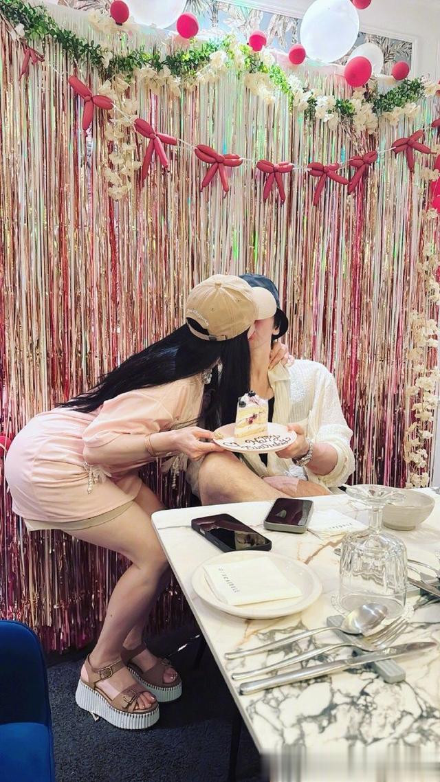 晒出的照片里,寿星张伦硕坐在餐桌前,他戴着帽子,穿着帅气的look。拍照时,他正端着蛋糕翘着二郎腿,坐姿那叫一个惬意。一旁的钟丽缇则弯腰蹲下来,并用手搂着老公的脖子,夫妻俩当着众人面来了个拥吻,也太齁甜了吧。而且细看照片不难发现,钟丽缇今年给自家老公举办的生日派对依旧是仪式感满满,虽然她晒出的照片只拍摄了派对的一角,依旧让大家感受到了现场的热闹。