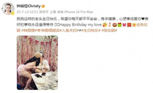 7月12日,演员钟丽缇在个人社交平台分享了一张与老公张伦硕的甜蜜拥吻照大秀恩爱,原来这天恰好是张伦硕43岁生日,以往每一年生日,钟丽缇都会晒出夫妻合照撒狗粮,今年也不例外。而且夫妻俩一个年过半百,一个已经40+,但甜蜜起来丝毫不输热恋时期,浓情蜜意真是甜翻众人了。