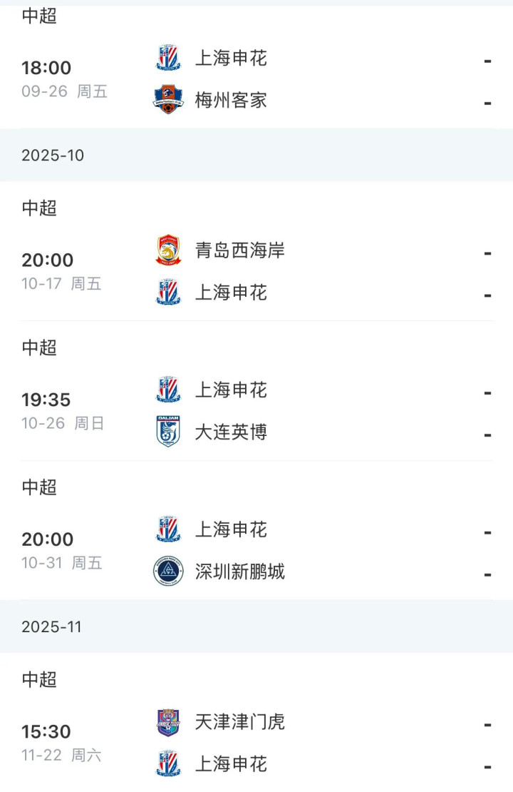 申花队的5轮赛程相对也比较轻松,分别对阵梅州、西海岸、大连、深圳和天津。5个对手的实力一般,都是考验申花队自己的状态。但是申花队目前落后成都和海港队3分,这是最大的差距。