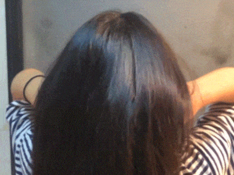 测试前,头发油到扁塌
